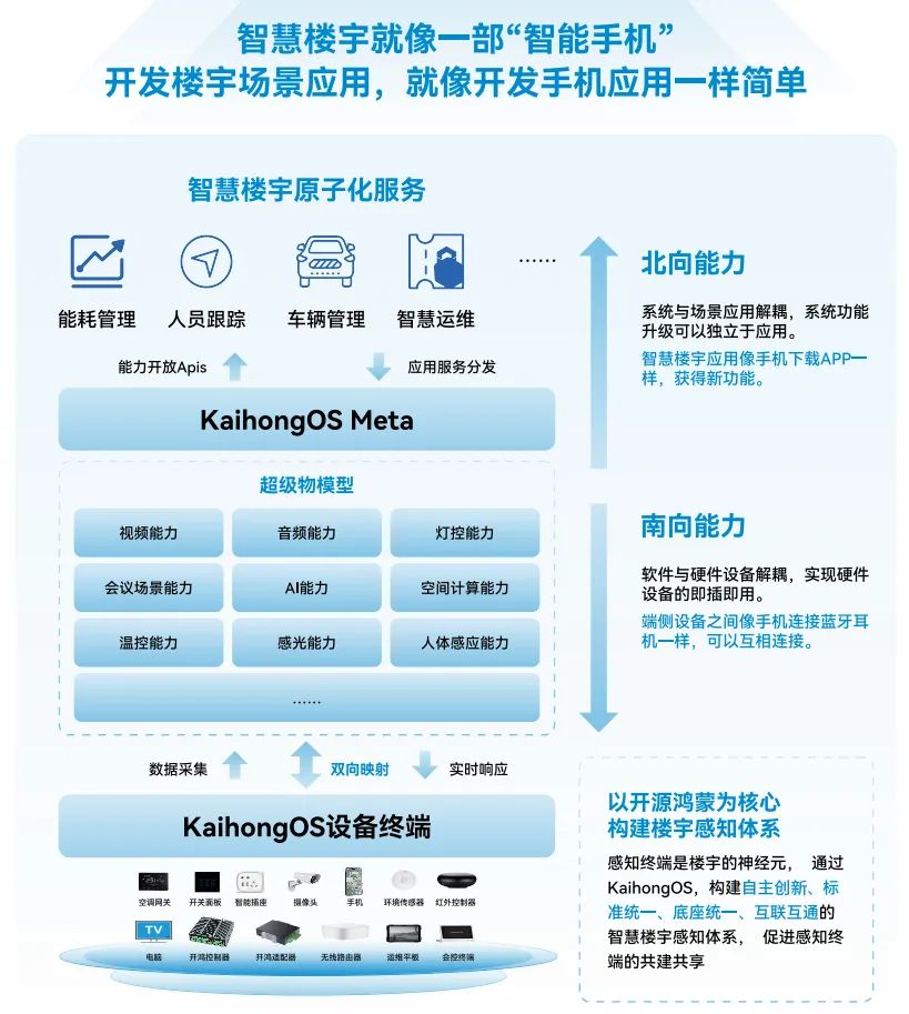 传统楼宇各子系统独立运行,形成数据壁垒。开源鸿蒙通过分布式软总线技术,将摄像头、传感器、空调等设备虚拟化为“超级终端”,实现跨端互联与算力共享。例如,消防系统告警时,数字孪生平台可联动摄像头追踪人员位置,并实时推送最优逃生路线;会议室预约成功后,暖通系统自动预调温度,照明系统按需开启。这种端云协同能力,使楼宇从“机械集合体”进化为“有机生命体”。